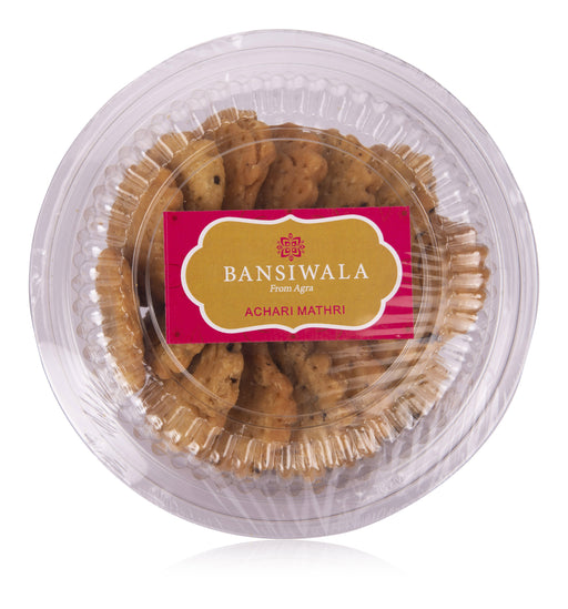 Bansiwala, MumbaiA perfect tea-time snack, a specialty of Agra, our Mathris filled with tangy achar(pickle) in it. A specialty of Agra, this is a flaky, savory bisc...