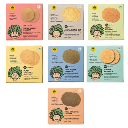 Gulabs, ChennaiDelicious Assorted Khakhra Pack – 7 Flavors in Convenient, Snackable Portions Flavours: Plain, Ajwain, Methi, Spicy Pudina, Ginger Garlic, Chilli C...