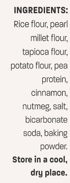 - Contains Rice flour,Bajra flour, tapioca flour, potato flour, pea protein, cinnamon, nutmeg, salt, bicarbonate soda, baking powder.