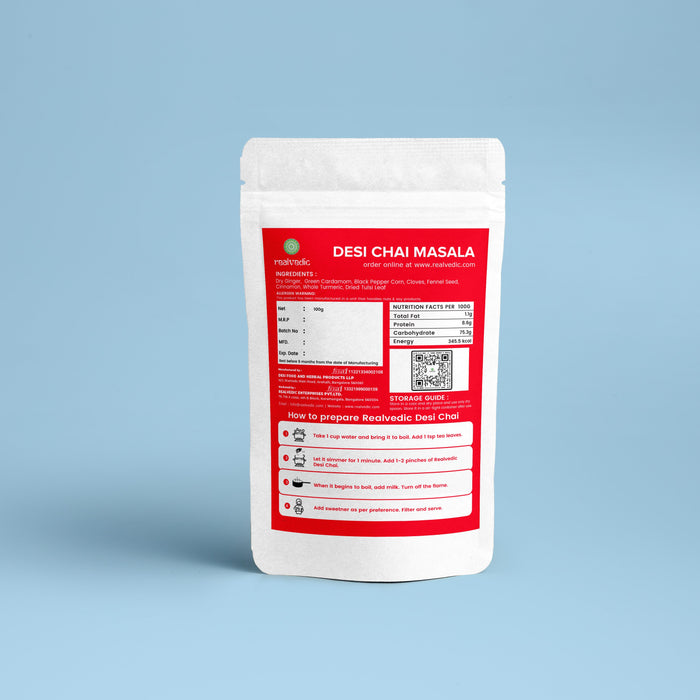 Add RealVedic Desi Chai Masala to your Chai/Tea to enhance your tea-drinking experience and also get nutrition with the right blend of spices. Each ingredient in this special blend holds its place in the list of healthy food items that otherwise are missed in the current busy lifestyle.