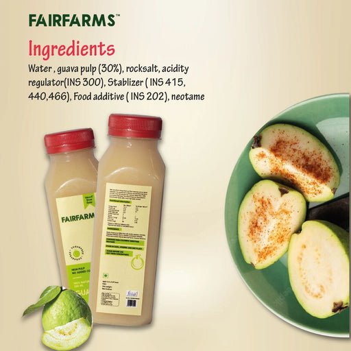 Our Guava is sourced from the farms of Sawai Madhopur in Rajasthan. Contains No Added color or sugar. Fairfarms Guava Juice has no added colors and...
