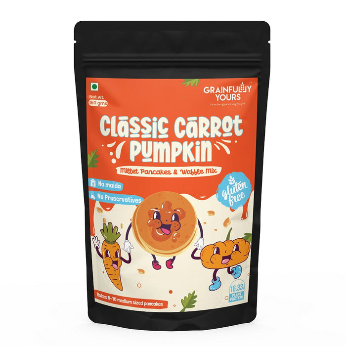 'Grainfully Yours' introduces its Unique flavours of 'Pancake and Waffle Mixes' which are made with millets like Ragi (Nachni), Jowar and Oats flour and plant proteins like Chickpea Flour and Red Lentils to give that added Protein content. Try this super healthy and nutrition breakfast options and make your morning more Grain-full !!