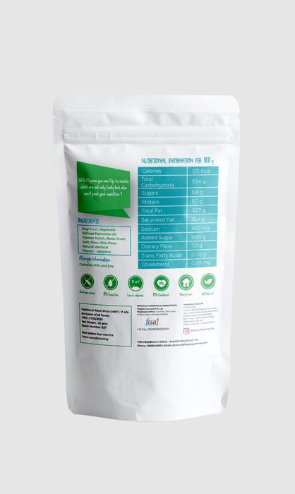 • Contains Ragi Flavour, Vegetable refined oil, Tapioca starch, Black Gram split, Flour, Red chilli powder, dry mango, Sugar, Rock salt, iodised salt.