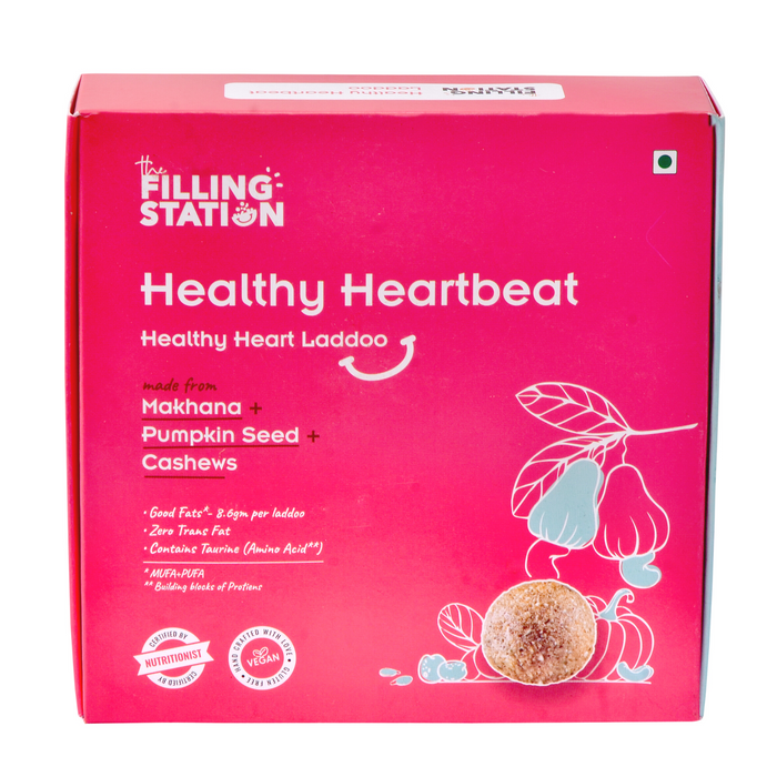 How many of you have read news about young people in their 30+ suffering from heart diseases? Heart health and age doesn’t seem to work together in this fast-paced world. It is important to take care of your heart irrespective of your age, to lead a healthy, happy life. With this thought in mind, we at The Filling Station have developed ladoos with Makhana, Pumpkin seeds, Cashew nut & Palm jaggery to help you build a strong heart while taking care of your sweet teeth. Thus, these laddus bring you the pleasure of eating sweets that is rich in healthy Unsaturated fat i.e. MUFA & PUFA while satisfying your sweet craving, a win-win situation for all. Have 2 of these laddoos as late evening or post dinner snacks and enjoy life!