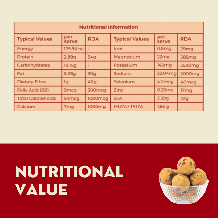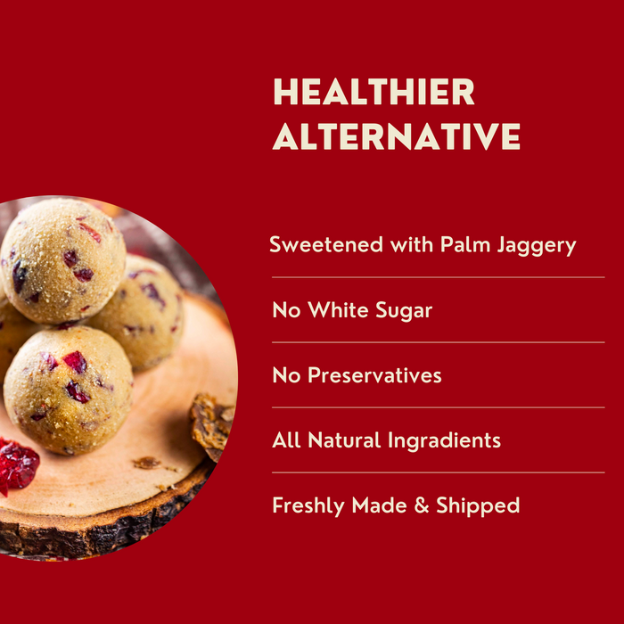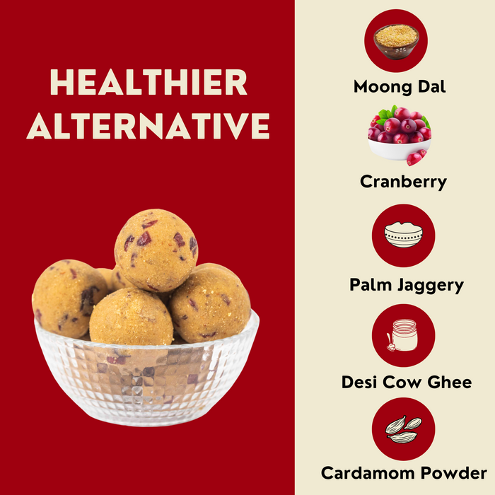 - Contains Moongdal, Cranberry, Palm Jaggery, Pure Cow Ghee & Cardamom powder