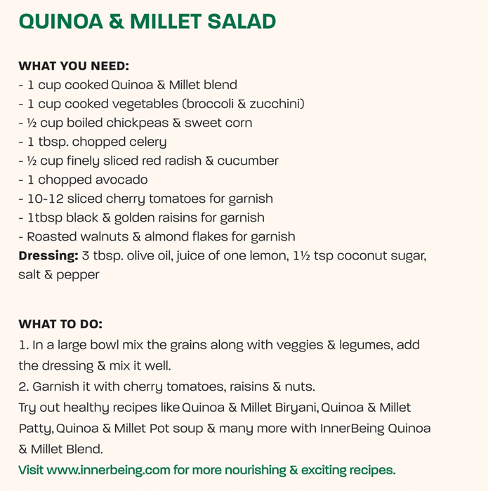 InnerBeing's quinoa and millet gluten-free blend is a healthy combination of protein and fiber that helps in boosting metabolism.