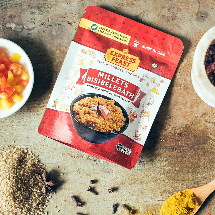Millets Bisibelebath is a healthy twist to the classic popular Mysore bisibelebath made from wholesome lentils and millets. Best served with curds or boondi.