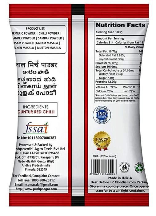 It is spicy, and naturally made. Red chilli powder is produced by grinding dried red chillies. It has a spicy effect when added to any food. It has a strong and sharp aroma. Red chilli powder is considered a hot spice.
