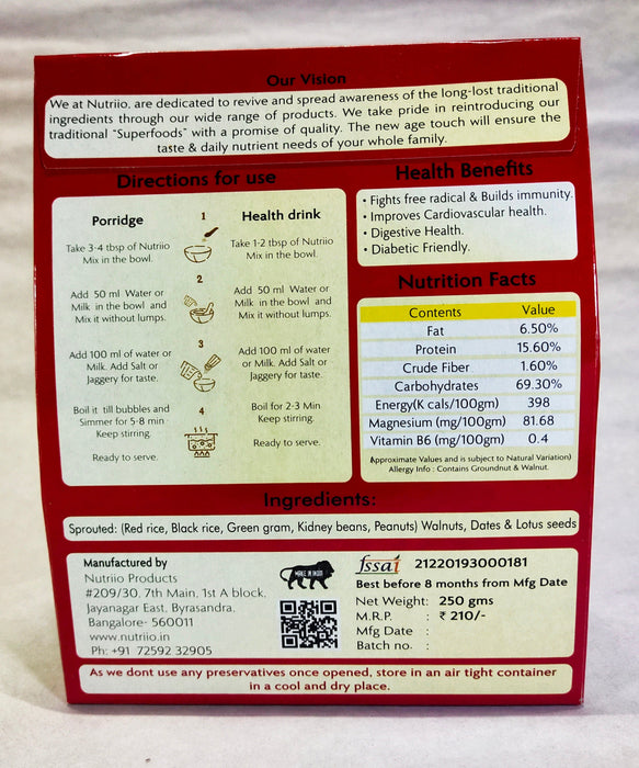 With Nutriio Sprouted Red & Black Rice Mix, enjoy antioxidant-rich, fiber-loaded, and protein-packed meals—perfect for families, fitness enthusiasts, and wellness-conscious individuals.