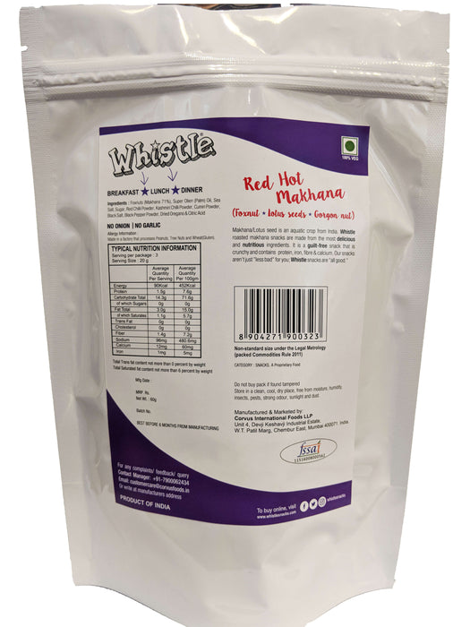 - Contains Makhana (Foxnut) (74%), Rice Bran Oil, Rock Salt, Sugar, Black Salt, Chilli Powder, Cumin, Black Pepper, Dried Oregano & Citric acid.