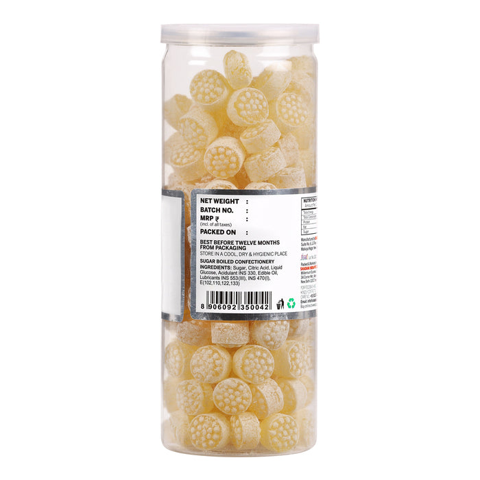 - Contains Sugar, Citric Acid, Liquid Glucose, Acidulant INS 330, Edible Oil, Lubricants INS 553,(III), INS 470(I), E(102, 122, 133)